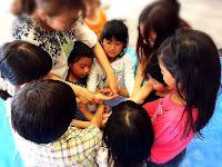 絵本の読み聞かせも、日本のこどもたちがやると、Sちゃんが「オレも!オレも!(女の子なんだけど・・・^^;」と主張!なんとか読めるようになったひらがなを、ゆっくりゆっくりだけど、堂々とみんなの前で読み聞かせしてくれました。